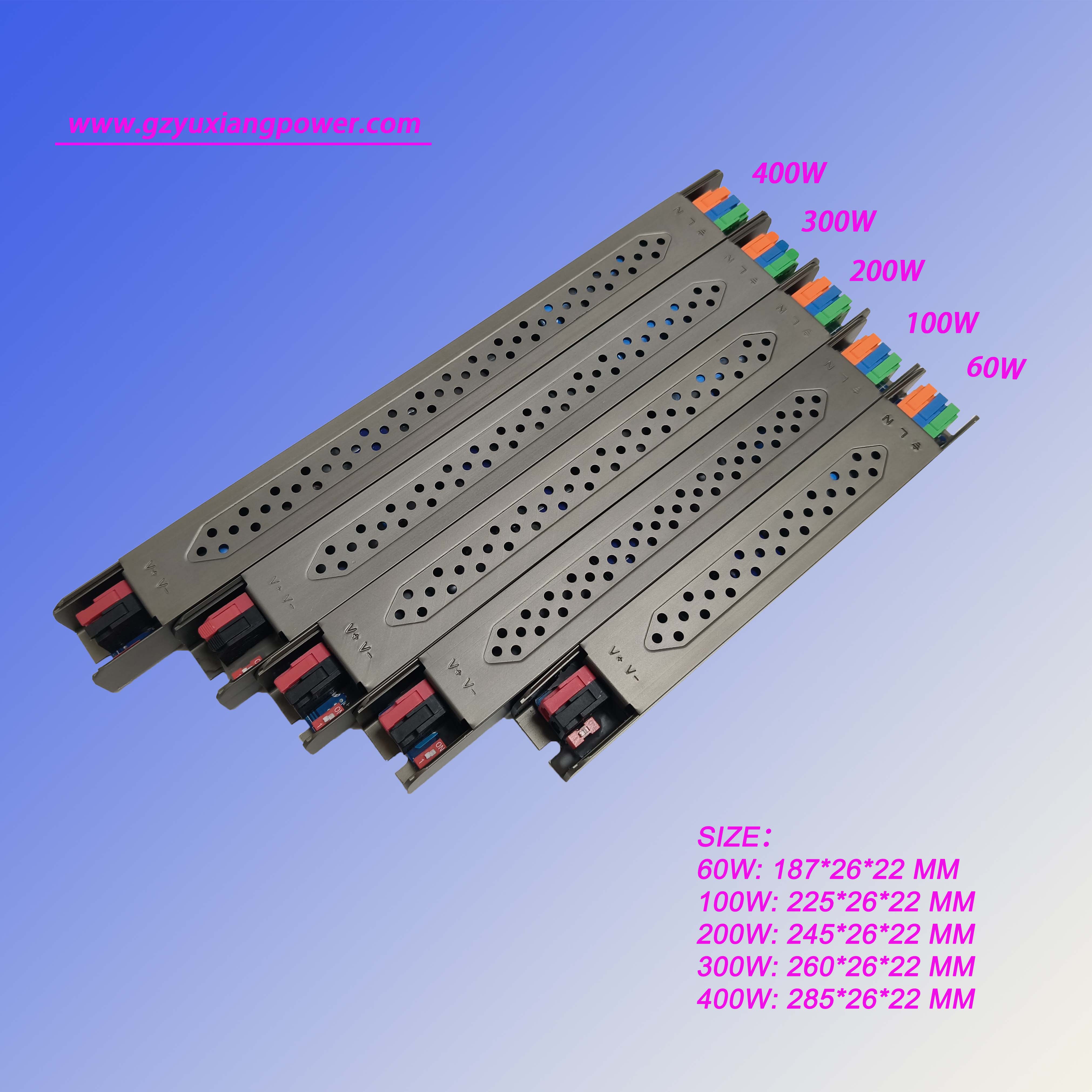 4. Bộ nguồn LED có thể điều chỉnh cực hẹp này cung cấp các mức công suất bao gồm 60W, 100W, 200W và400W, phục vụ các yêu cầu năng lượng đa dạng từ không gian nhỏ gọn đến các dự án quy mô lớn.